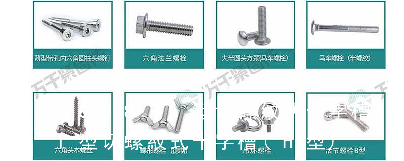 外扳擰:六角、六角法蘭面、六角凸緣、六角花形等;內扳擰:一字槽、十字槽H型、十字槽Z型、十字槽F型、四方槽、復合槽、內花鍵、內六角花形、內三角、內六角、內12角、離合器槽、六葉片型槽、高扭矩十字槽等。3、 ⑤牙型/尾型 : 用字母來表示牙型/尾型的種類,可參看前文“常用螺釘牙型/尾型分類”。 ⑥槽型 :參看前文“我司常用螺釘槽型分類”,十字槽或無槽(如沖六角頭螺釘)此處無需標 注,其它槽型 需用文字說明。 ⑦特殊標注 :一般情